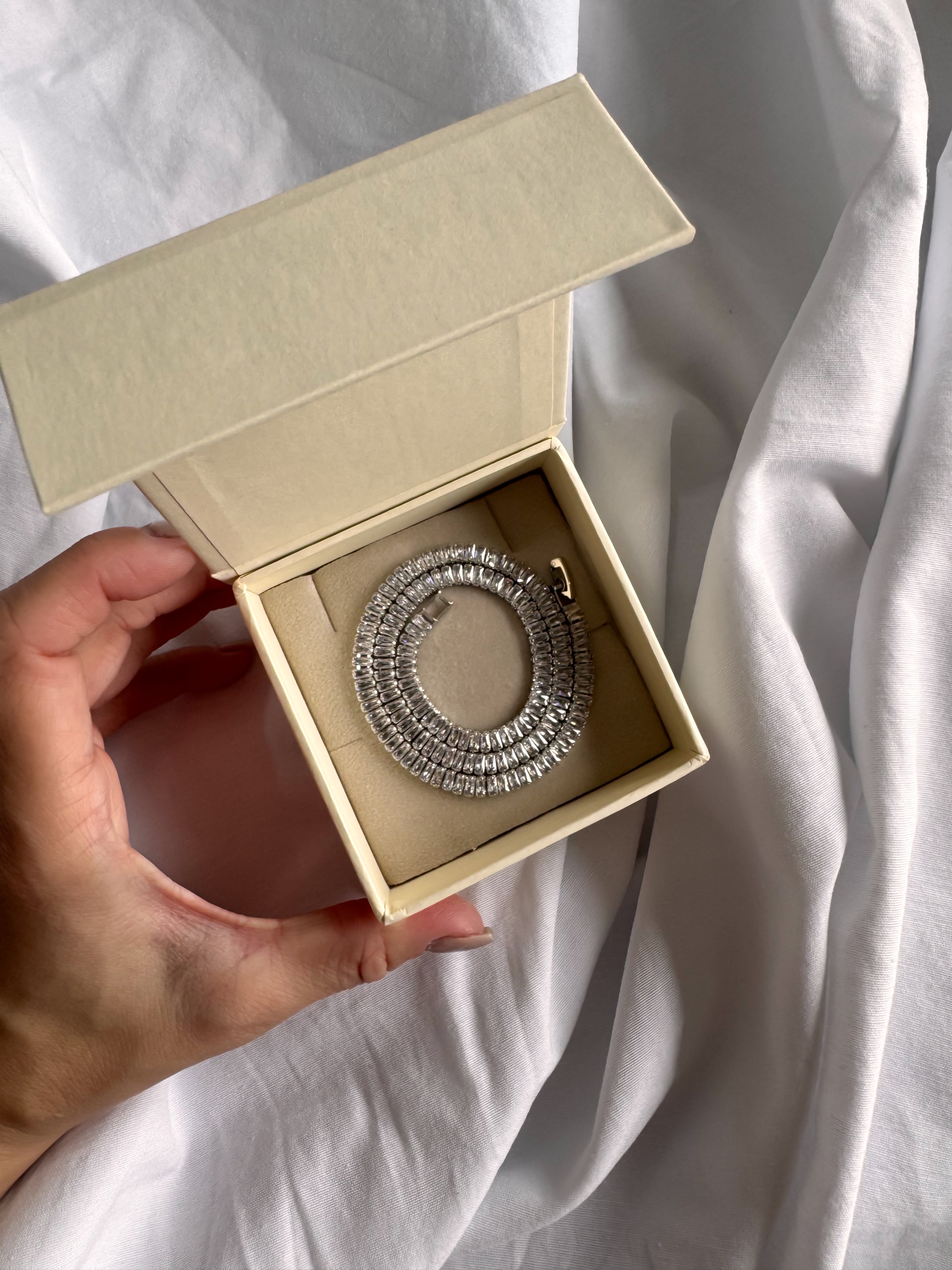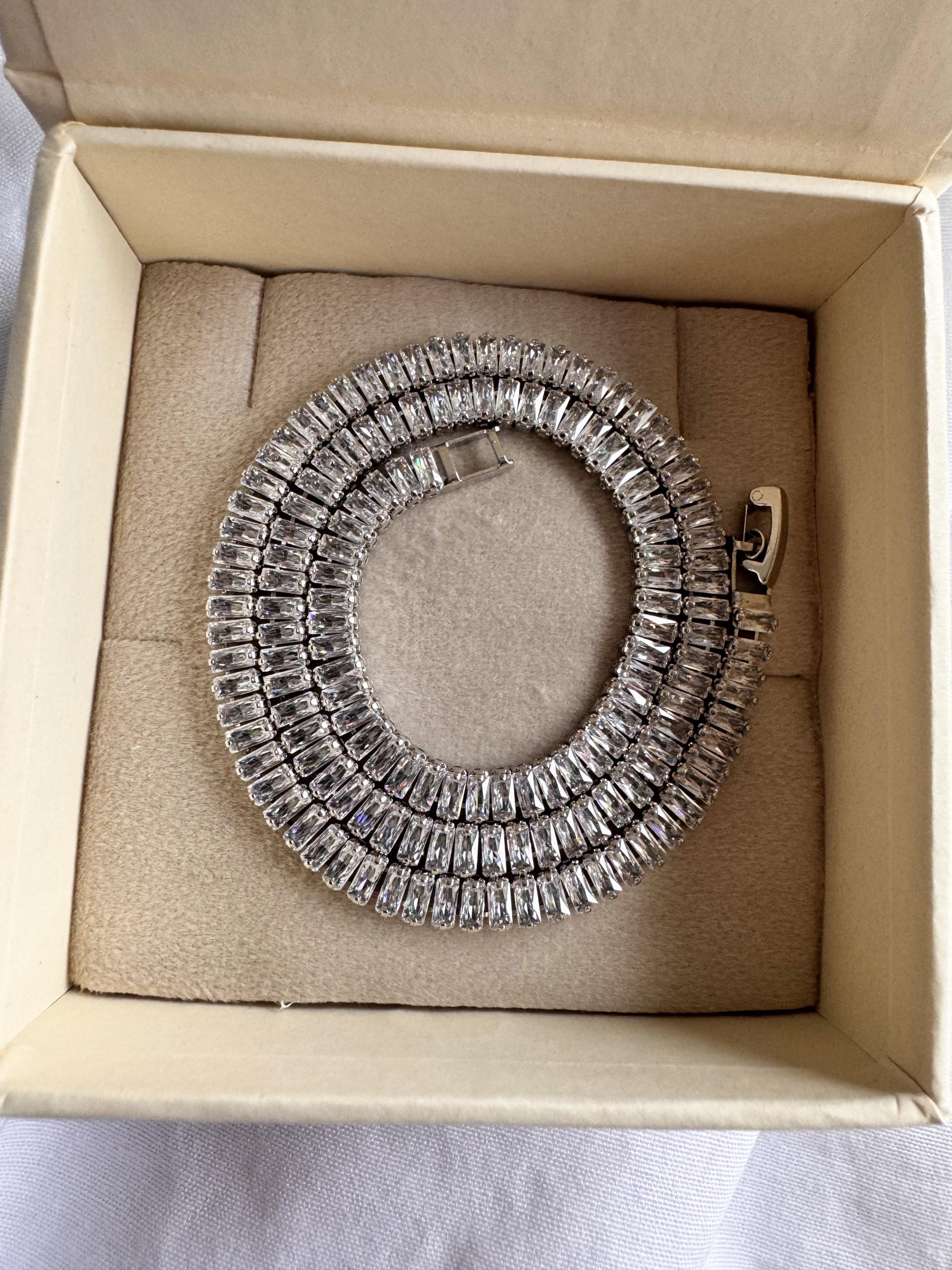 Sofisticação e brilho em perfeita harmonia. O Colar Riviera Maison Ródio é uma peça marcante, com zircônias brancas em lapidação baguete que refletem a luz com intensidade e elegância. Sua estrutura em banho de ródio confere um acabamento prateado de alto padrão, ideal para quem busca uma joia versátil e atemporal. Perfeito para ocasiões especiais ou para adicionar um toque refinado ao visual do dia a dia.