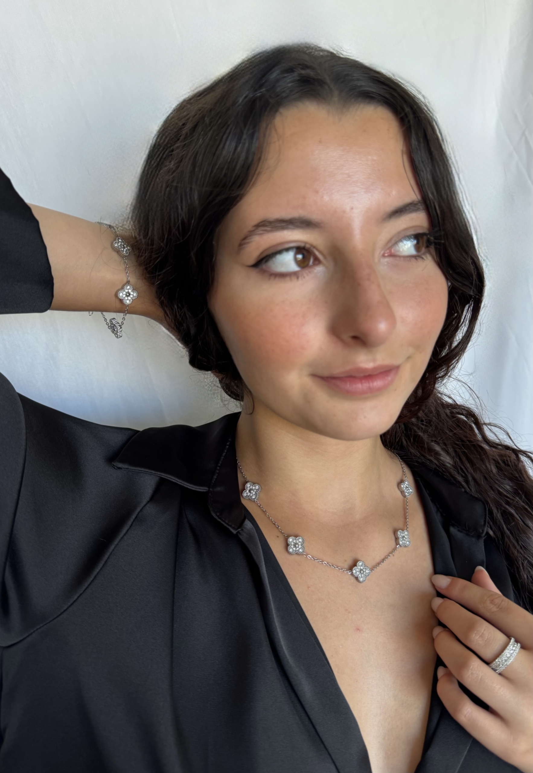 •Feito de aço inoxidável com cravações em zircônias. As peças de aço inoxidável na sua cor natural (prata) não desbotam, não enferrujam, não escurecem e não causam alergias.